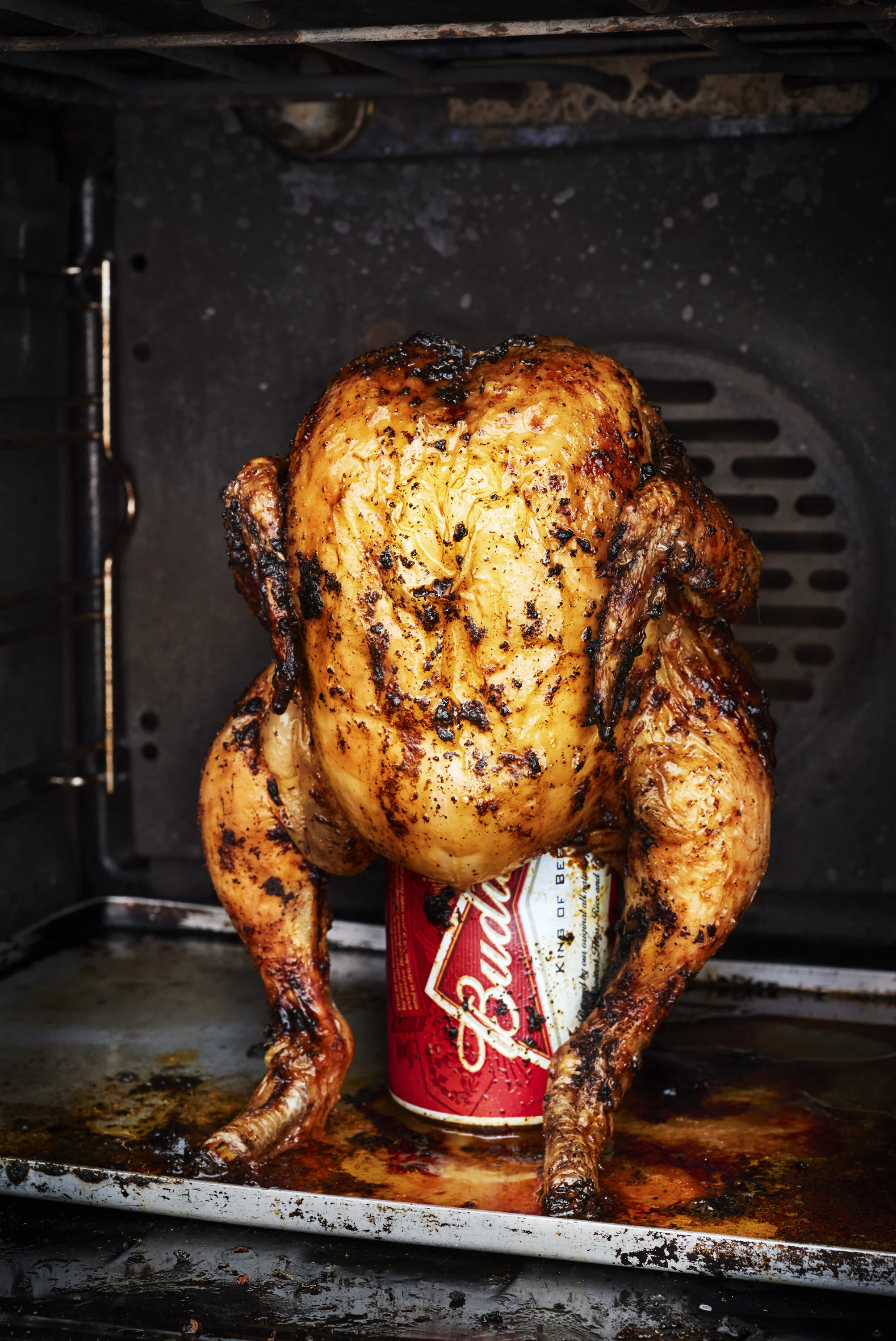 Heinz Tomato Ketchup in it's trademark glass bottle, upside down but almost empty, ready for a knife to reach up to pull the ketchup out. Food and drink photographer and director Scott Grummett is responsible for the image. View fullsize