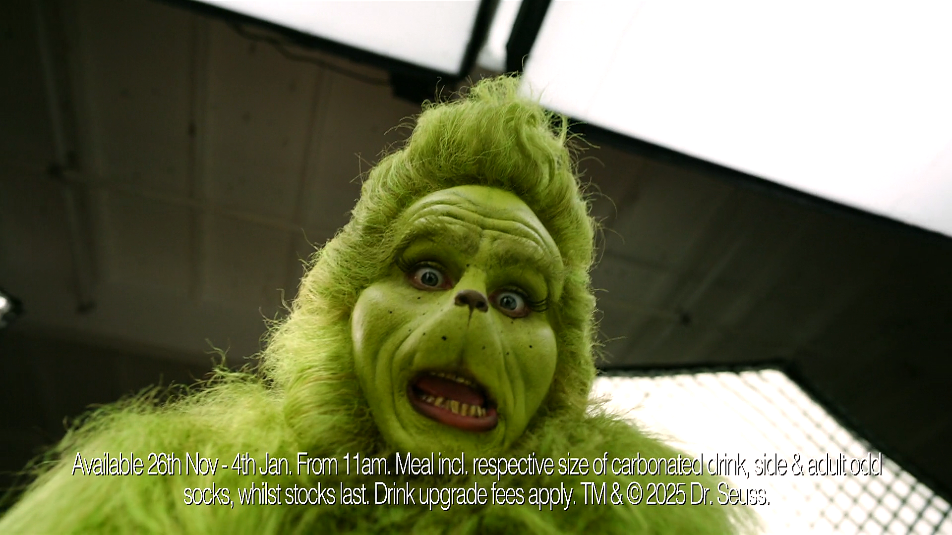 We had two aspects, the brand new and improved Double Big Tasty as well as the Cheesy Chicken Stack. Then came the Grinch himself as he dragged us away from our ad to tell us about his own very special meal.
